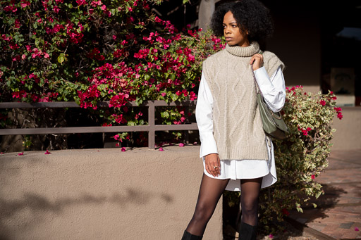 This trend has made its way into every "fashion girl's" closet the last couple seasons or so. And with the current weather situation having been a lovely low 60's with the average of 8 hours of sun (I was in Arizona at the time)... I think, layered over your staple fall pieces, this knitted vest trend creates the perfect outfit.