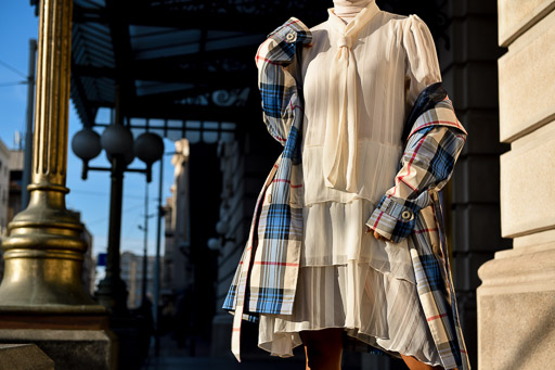 This outfit was actually determined by the plaid trench coat. I loved the color palette of baby blue with red, but over a white dress, the red didn’t pop like I wouldv'e liked it to. And that’s where the red boots came in...