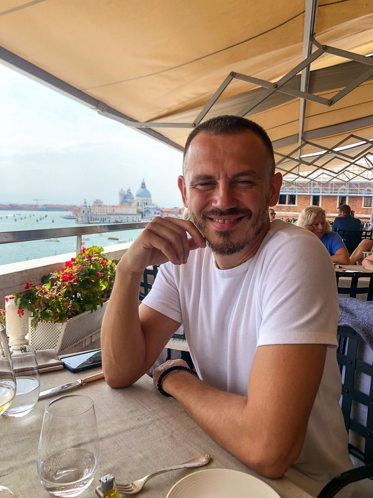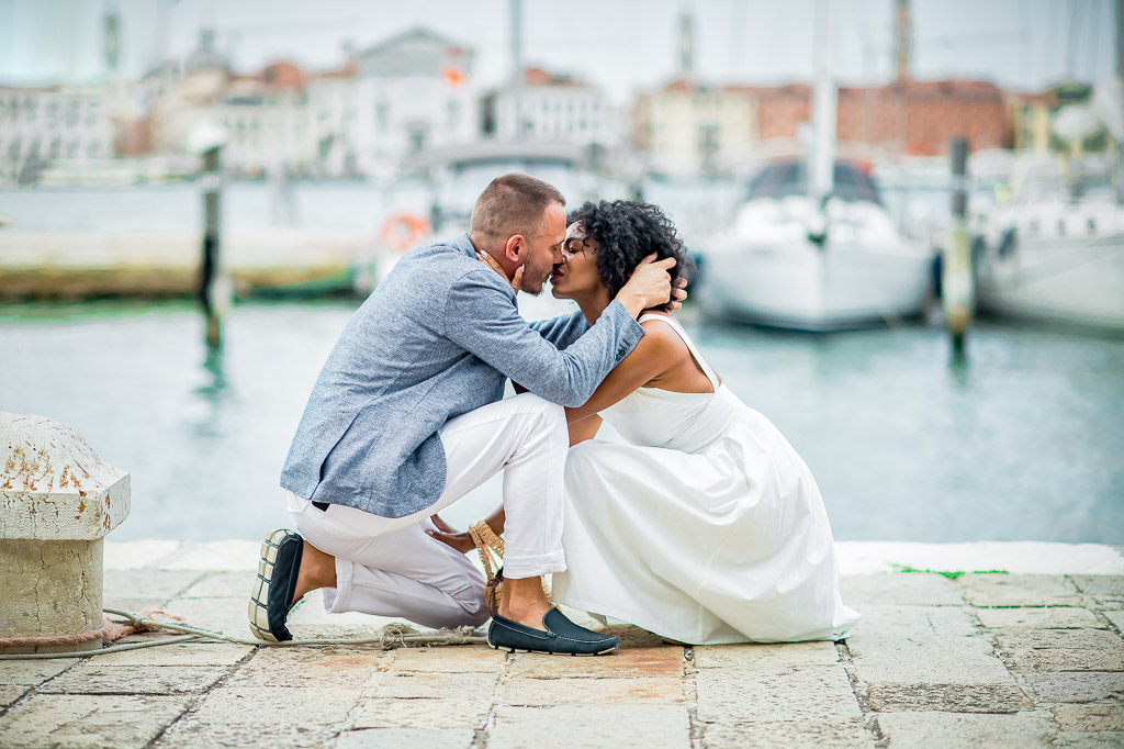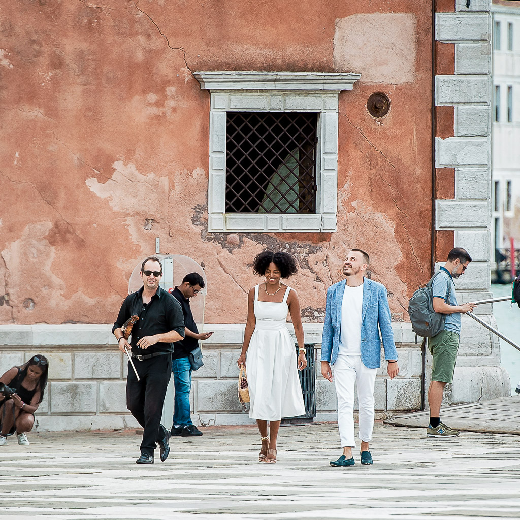 We finished up, and began walking towards the Lagoon, with nowhere really in mind, just walking, again holding hands, beaming from ear to ear. Me from trying to understand how was this my real life and him from his mastermind plan going accordingly. As we continue to stroll, the quintessential Italian man, you know the one, with the hair and everything, approached and asked us to "follow him, he wanted to show us something." I started to tell him no while looking at Milan who was already walking in his direction. That is not like him. Like at all. Reluctantly, I follow suit to a boat almost waiting on us. The man jumped in, turned around, and reached for my hand. "Please watch your step." If I wasn't confused before, now I definitely was! Mostly that Milan was ok jumping into some strange Italian guy's boat. He starts the engine and I lean over to Milan and whisper "he's gonna charge the sh*t out of us for this." I figured he wasn't bothered, so I leaned back in my seat and savored the moment. He pulled up to San Giorgio's Island where we disembarked and he drove away into the distance.
