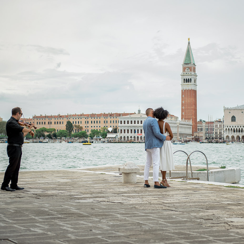 We walked on over to grab coffee at Caffe Florian Venezia, the oldest cafe in the world. With the infamous San Marco's square serving as the backdrop and before us a well organized orchestra playing classical tunes on piano and violins alike. We sat in the center of the crowded tables and ordered a double espresso for him and a cappuccino for myself. At that moment, a white tuxedo wearing waiter approached us and said "Miss, if you don't mind the band would like to play something for you." When I replay this moment, I feel like I should've known something was brewing, but I was so caught up in the ambience, in the cafe, in the city, in this mood. I confusingly obliged and sat in the moment feeling so full with the love of my life right next to me.