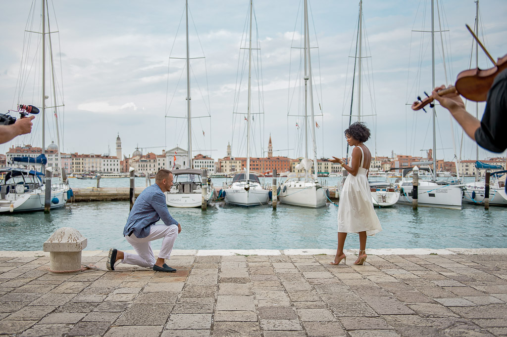 Shocked and in complete disbelief, I start replaying the whole day in my head. He didn't rush me while I was getting dressed, the amazing lunch, the weird guy in the alley, the orchestra, the boat guy with the good hair, the violinist who wouldn't go away and now this camera crew!? How!? When!? And then he whispered "Oh sh*t!" dropping his head in defeat, I looked into his eyes and then we both started laughing...