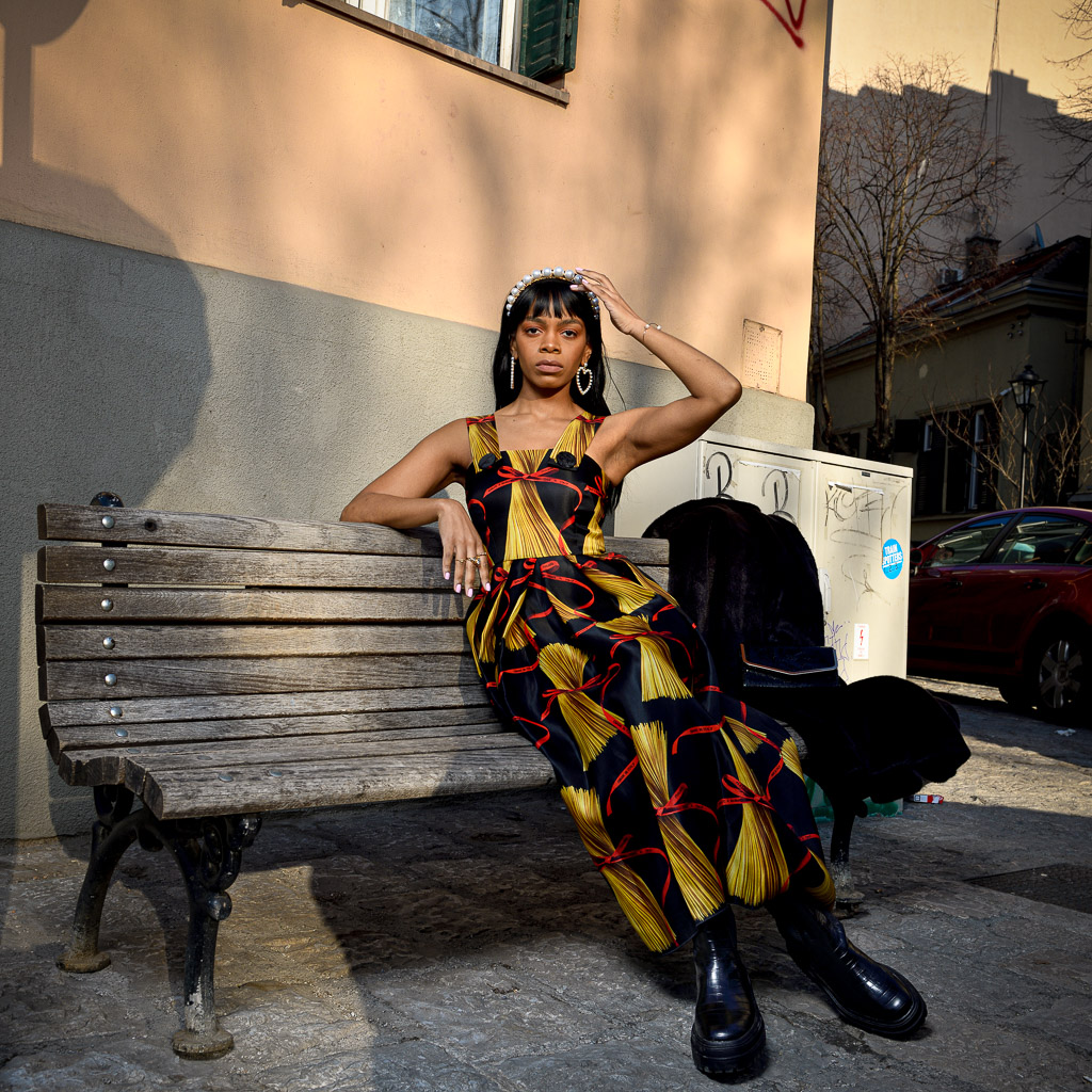 It was a warm winters day, warm enough to ditch my coat for a couple hours while shooting. Or maybe it was the super powers that this dress seemed to have given me. Either way, this deep brown faux fur coat from &other stories complimented the outfit giving the already lux look a touch more opulence. I mean, it's one thing to look it, another story when you feel like schmoney *Cardi B voice*. And that my friends, is what I call "power dressing".