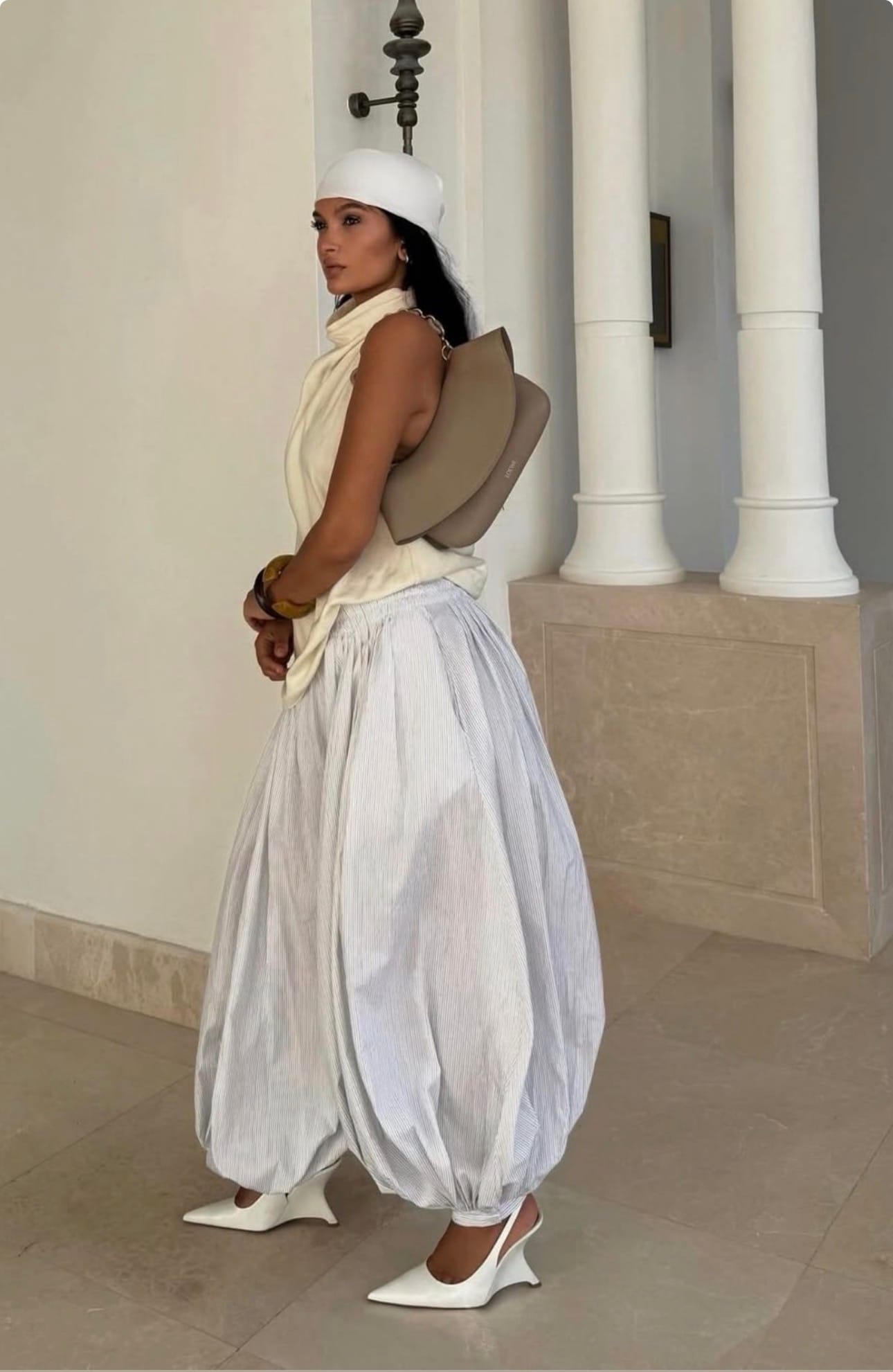 I'm really into textures and silhouettes at the moment, and balloon pants tick all those boxes. My ideal way of styling balloon pants would be to pair it with something draped and asymmetrical, but taking it even further I think the real hack here is to make sure you are cinched at the waist to further accentuate and play into the shapes.
