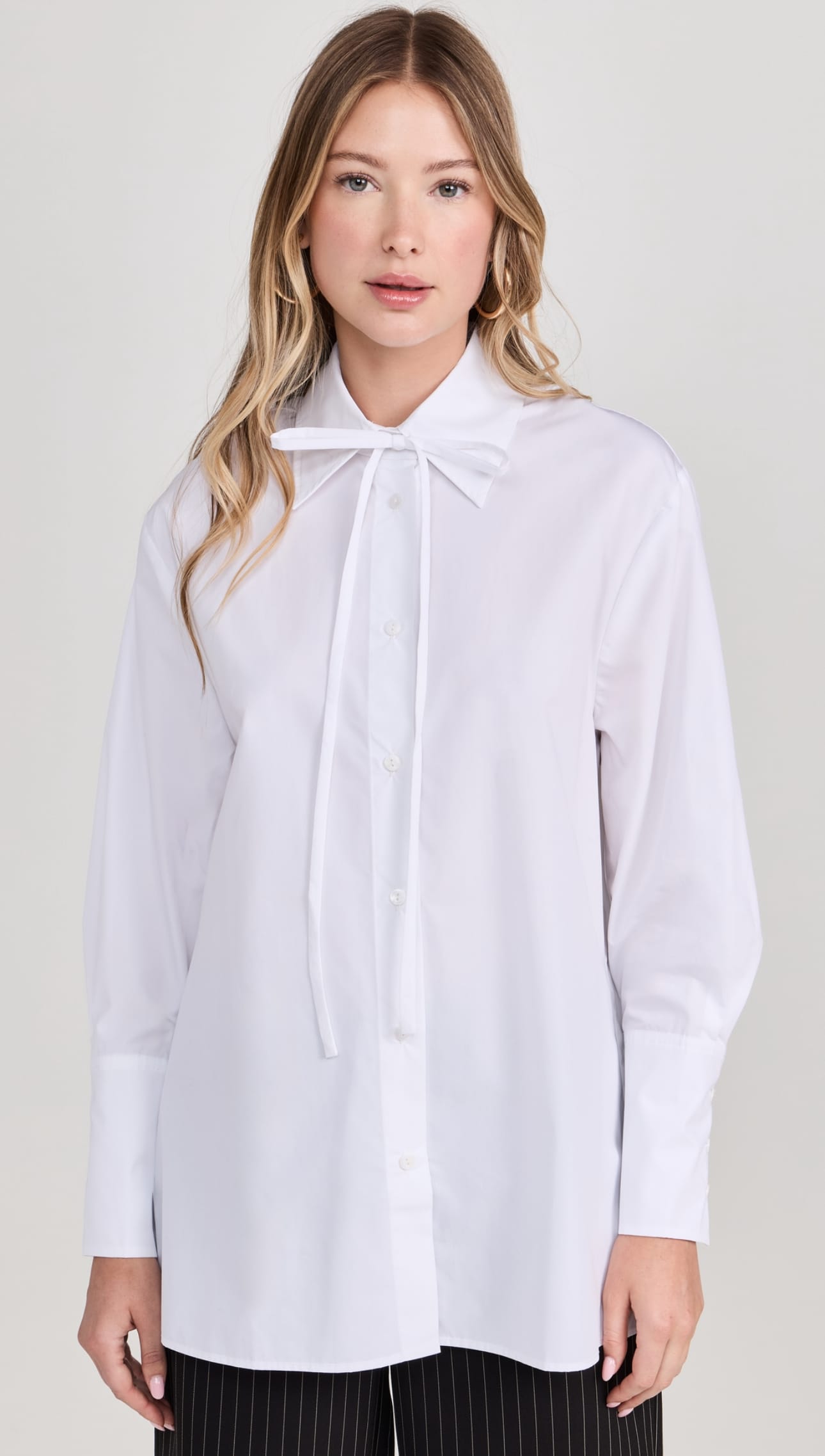 The white button down is the perfect base for winter styles. It's versatile, effortless charm is what makes it timeless. There are so many ways to keep it fresh and updated like choosing it in a hue that's current this season or in a cut that'll add interest and dimension to your look, like dramatic sleeves or an exaggerated collar.