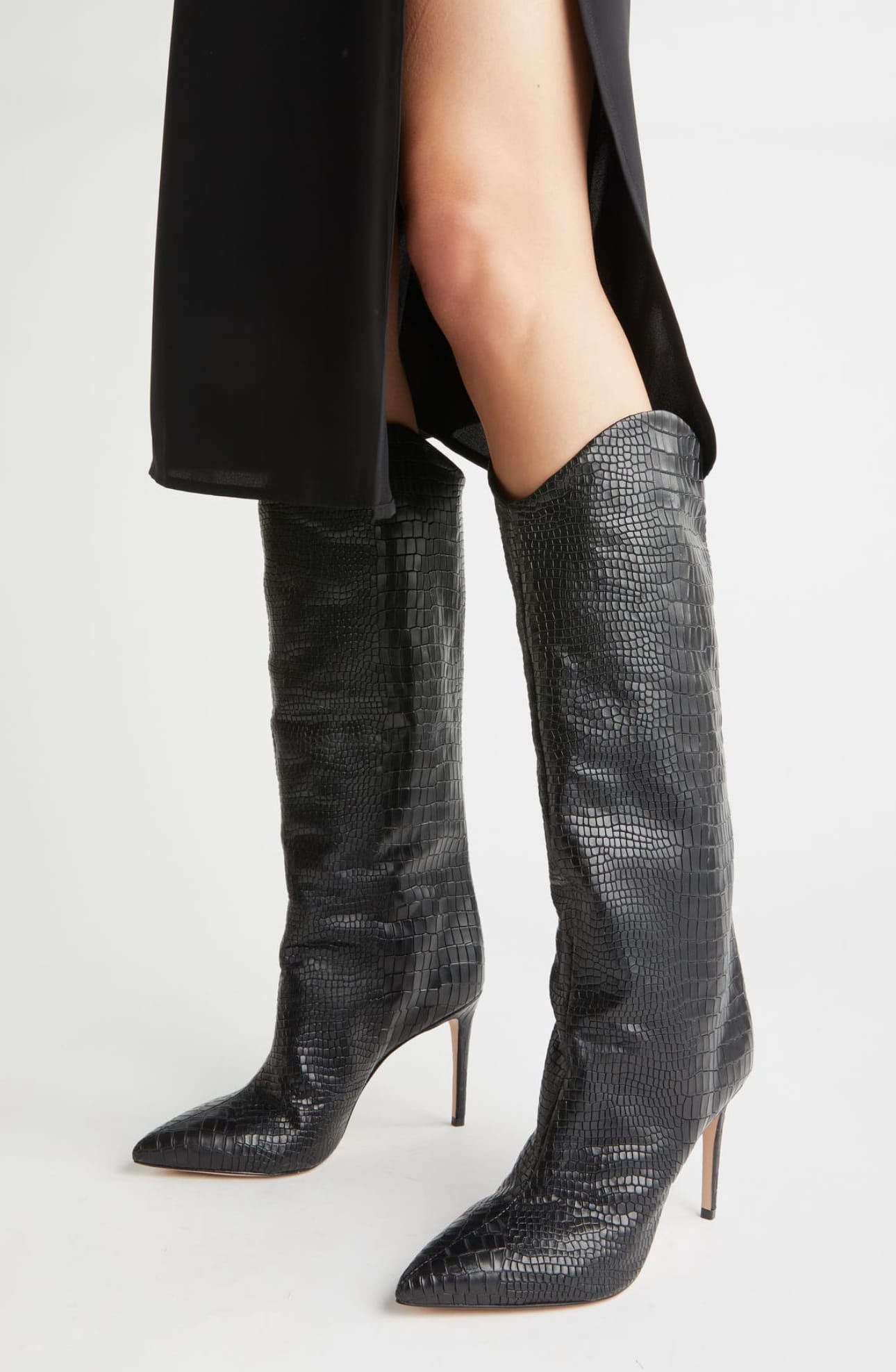 1) For a modern chic look: button down shirt, tucked into mini skirt, sheer tights and knee high boots